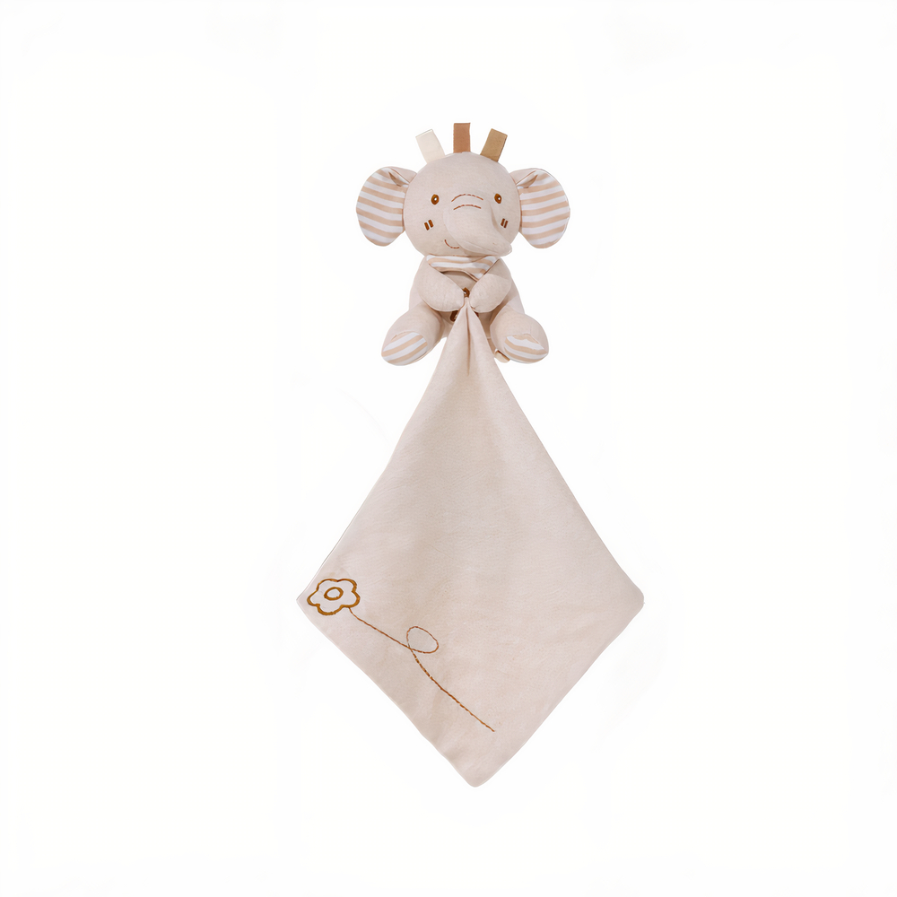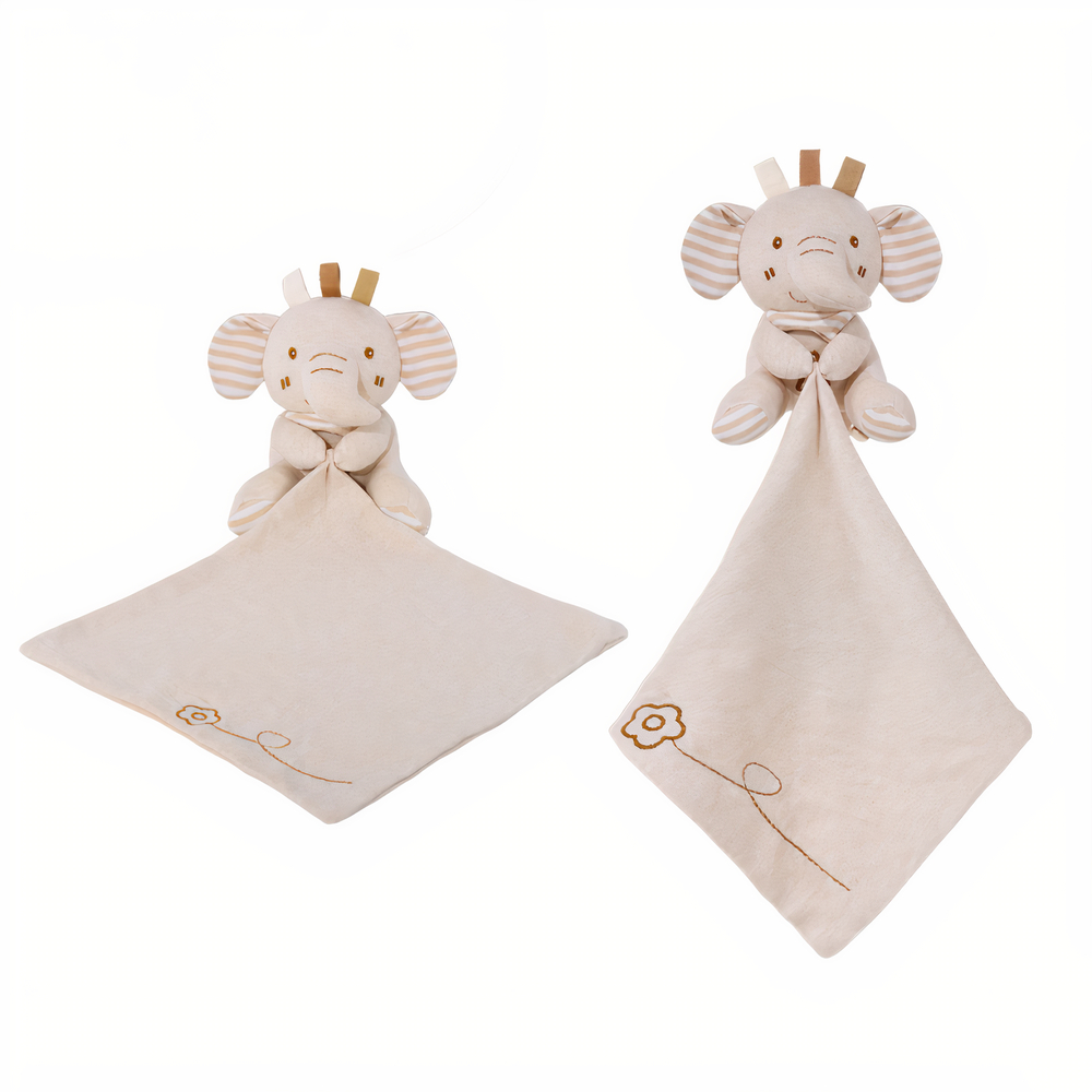 Also suitable for use as a puppet, this adorable beige elephant plush toy is shaped like a handkerchief and comforts baby in all his early adventures. Our elephant is made from high quality materials and is built to withstand years of play. It is perfect for cuddling and makes a great companion for your little one. This elephant will quickly become your child’s favourite toy!