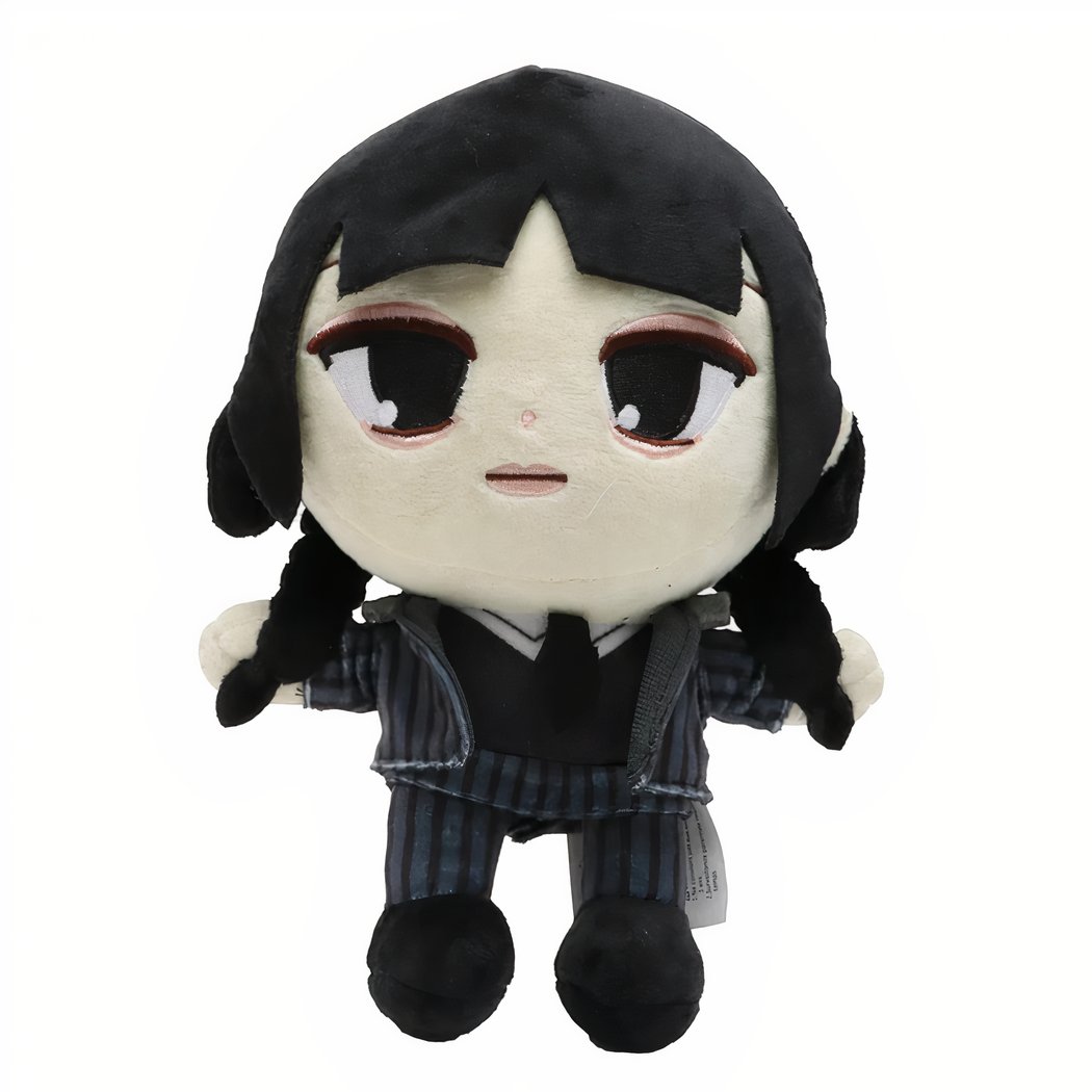 This pair of original Wednesday series soft toys allows your child to enter the world of Nevermore in a soft and fun way. Wednesday Addams, as serious as ever in her striped uniform, and Enid Sinclair, dazzling with her pink and purple hair, have nothing in common… except their beautiful friendship.